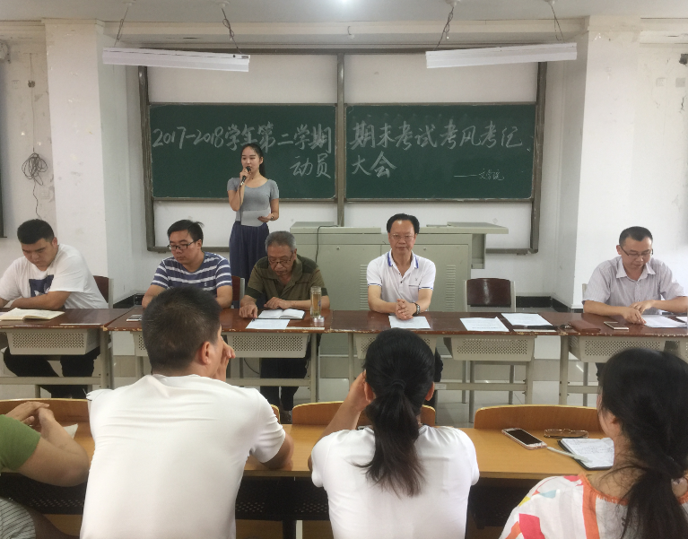为了进一步加强同学们的考风考纪,构建诚信校园,保证期末考试的顺利进行,倡导同学们“端正考风、严肃考纪、文明答题、诚信应考”。6月26日,在人文楼410教室召开了期末考试考风考纪动员大会,出席本次会议的人员有太阳集团网tyc9728院长傅瑛、副院长毛正天、党总支书记张甲楠、行政秘书陈俊老师、教学干事王松老师、学工干事徐远东、全体辅导员,团总支学生会全体成员以及2015级、2016级、 2017级各班班长、团支书、学习委员。会议由徐远东主持。