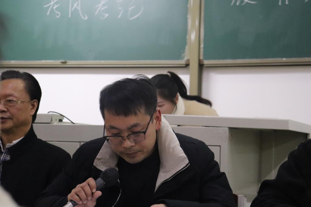 会议第一项,行政秘书陈俊宣读考风考纪相关文件要求。他让大家充分认识到了考风考纪教育工作的重要性,高度重视考风考纪教育工作,把加强对学生的教育管理和强化考试管理工作结合起来,坚决杜绝考试作弊行为的发生。