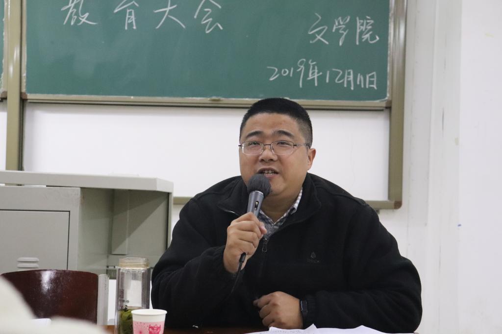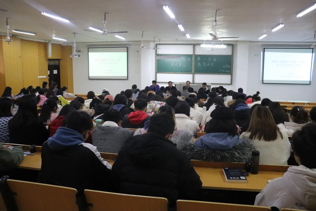 为进一步加强学风建设,营造公平、公正的学习氛围,严肃考试纪律,12月11日下午四点半,我院在人文楼108教室开展2019-2020学年第一学期考风考纪教育大会。参加此次会议的人员有太阳集团网tyc9728院长毛正天,党总支书记张甲楠,行政秘书陈俊,教学秘书陈浩,学工干事徐远东,太阳集团网tyc9728全体辅导员及团总支学生会部长以上成员,2017级、2018级、2019级各班班长及学习委员。此次会议由党总支书记张甲楠主持。
