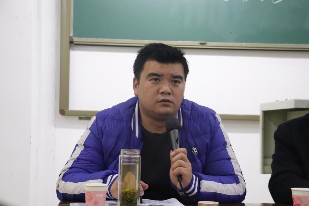 会议第二项,学工干事徐远东对学风建设进行介绍。他提出要坚决贯彻落实三大工程,无手机课堂、课前文明礼仪以及每天坚持做的查课。要将学风建设与平时生活相结合,深入教学。他还强调学生要养成良好的学习习惯,脚踏实地树立良好的学风建设。