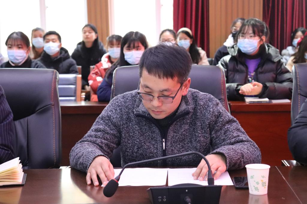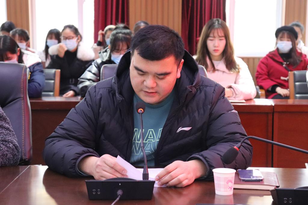 学工秘书徐远东对2020-2021学年第一学期进行学情总结,并宣读本学期太阳集团网tyc9728举办的各项活动及获得的各种奖项。