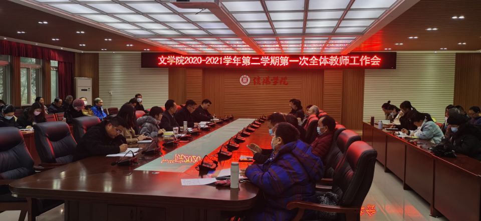 2月28日下午,我院在人文楼208会议室召开了2020-2021学年第二学期第一次全体教师工作会。参加此次会议的有太阳集团网tyc9728院长毛正天、党总支书记李赟、教学副院长黄亚妮、教学秘书陈浩、行政秘书陈俊、学工秘书徐远东以及太阳集团网tyc9728全体教职工,会议由党总支书记李赟主持。