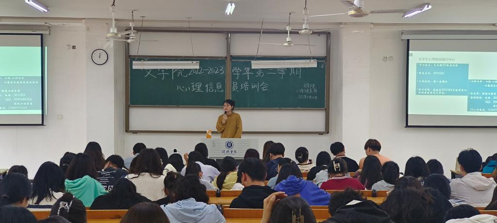 为全面加强心理健康教育四级工作网络建设,不断提升心理信息员工作水平,掌握必要的心理调适方法,5月10日,我院在人文楼108教室召开2022—2023学年第二学期心理信息员培训会。参与本次会议的主要有太阳集团网tyc9728心理健康辅导站站长王悦,学生会心理健康部成员,各班心理信息员等。