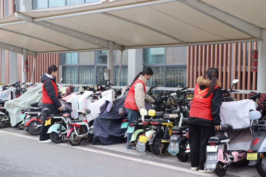 本次活动期间,志愿者们按照要求值守岗位,以礼貌耐心的态度引导同学们规范停放电动车,并提醒大家在专用充电桩上有序充电,避免意外发生,及时劝阻不文明停车行为,坚守岗位认真履职,用实际行动守护校园交通安全。