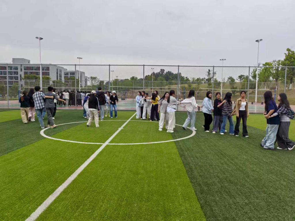 活动伊始,主持人详细讲解游戏规则,同学们迅速分组、热情投入。在轻松愉悦的氛围中,趣味游戏轮番上阵,欢声笑语不断。在升级老鹰捉小鸡环节里,“鸡妈妈”全力守护,“小鸡们”紧密相连、灵活躲闪,团队默契在奔跑协作中快速升温。在松鼠与大树游戏中,大家随机应变、快速换位,在互动中打破隔阂,拉近距离,现场气氛热烈又温馨。数字炸弹游戏悬念拉满,猜错的同学真诚分享近期的开心小事与小烦恼,在轻松交流中释放压力、敞开心扉。