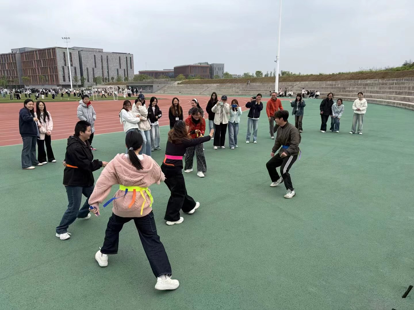 为缓解同学们的学习紧张感,放松身心,拉近同学距离。4月23日,23汉语本22班于田径场举办“同心趣玩、幸福解码”心理团体辅导活动。本次活动通过趣味游戏,加强同学之间的互动,营造积极向上的班级氛围,活动由谢远东老师指导,23汉语本22班全体学生积极参与。