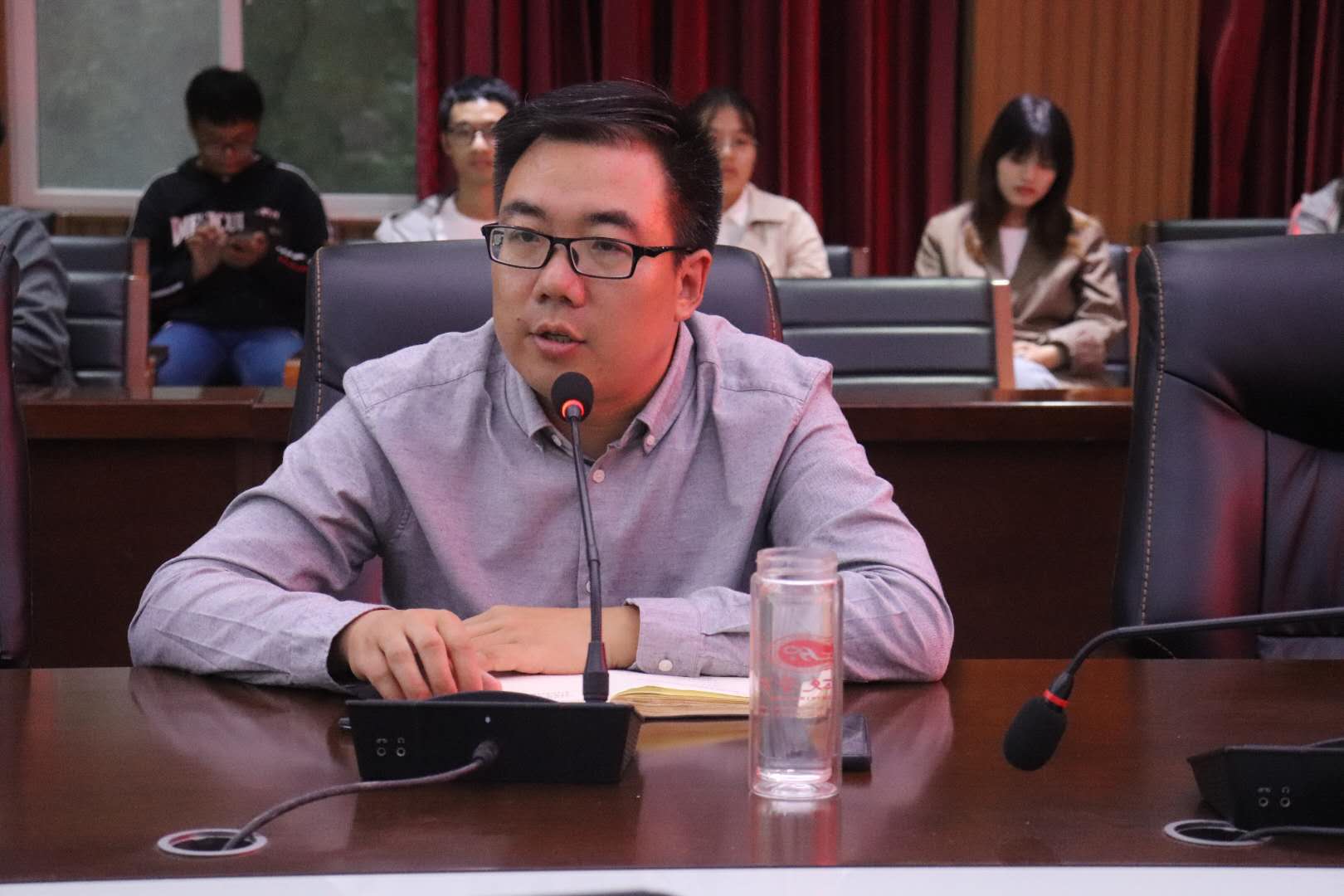 教学办针对近期学院的教学工作进行汇报。教学秘书陈浩对学院关于新生课程安排的相关情况进行了详细的阐述。他对新生学生证的办理和补考工作的推进做了安排,希望各位辅导员能够通知到位,确保各项工作能够顺利进行,并对各位老师在近期工作中所付出的努力表示感谢。教学科各教务员对自己所负责的工作进行了相关的通报。