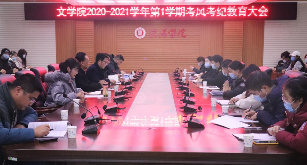 为进一步加强考风建设,为广大学生营造良好的考试环境。12月10日下午4点20分,我院在人文楼208会议室召开2020—2021学年第1学期考风考纪教育大会。出席此次会议的有太阳集团网tyc9728院长毛正天、党总支书记李赟、教学副院长黄亚妮、教学秘书陈浩、行政秘书陈俊、学工秘书徐远东以及全体辅导员。团总支学生会主席团、2018级、2019级、2020级各班班长和学习委员参加了此次会议。会议由党总支书记李赟主持。
