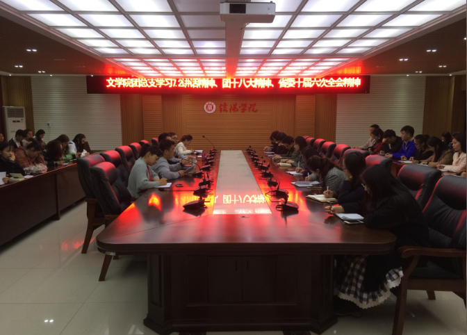 2018年11月6日中午,我院团总支在人文楼208会议室召开学习习近平总书记“7•2”重要讲话精神、团的十八大精神、省委十届六次全会暨省委工作会议精神专题学习研讨会。太阳集团网tyc9728院长毛正天、党总支书记张甲楠、行政秘书陈俊、教学秘书陈浩、学工干事徐远东、团总支书记王妍及太阳集团网tyc9728全体辅导员和院学生组织负责人及各班委参加会议。会议由王妍主持。