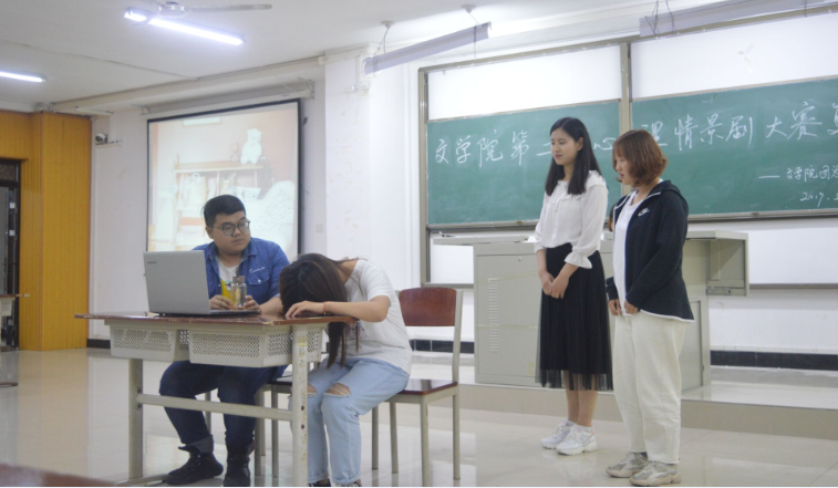 本次大赛由初赛选拔出来的四个节目参加我院情景剧复赛。比赛中,剧目组成员展示出了特色鲜明、内容健康向上、选材紧密联系生活的情景剧,演员们用充沛的感情、生动的语言、富有感染力的声音,精彩地演绎和诠释了当代大学生的心理成长历程,映射出大学生的心理情感世界。这些情景剧主题鲜明,题材新颖,剧情引人入胜,起到了良好的心理教育效果。本次比赛凸显出同学们的聪明才智和团结协作的精神,展现出大家生活中的一些矛盾冲突,巧妙地引导大家如何化解生活中遇到的矛盾,或严肃,或活泼,仿佛让人身临其境,观众的心里受到了极大的震撼,演员们也赢得了一阵阵喝彩。经过一番激烈的角逐,2018级汉语言文学8班的《来自星星的孩子》获得了进入校赛的资格。