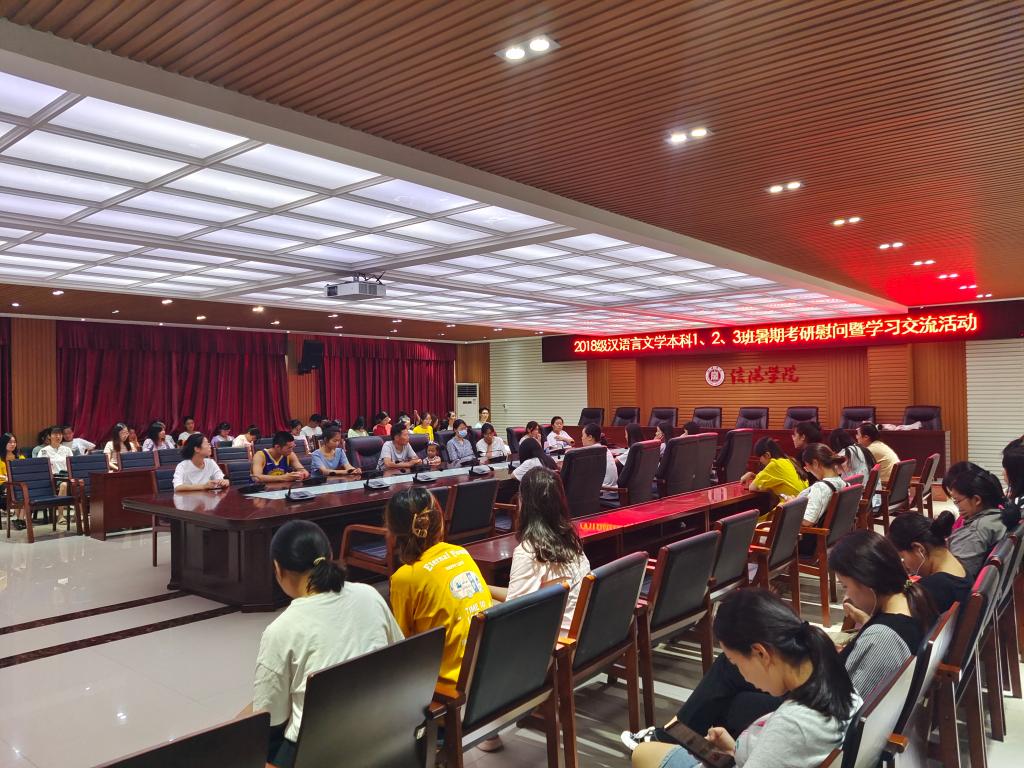 7月29日上午,我院辅导员訾同超老师在人文楼208会议室看望慰问所带2018级汉语言本科1、2、3班暑期留校考研学生并开展学习交流活动。