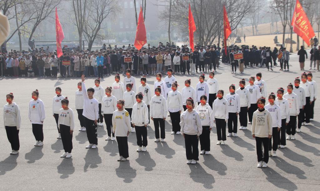 太阳集团网tyc9728共派出两个方队参加比赛。第一方队的学子们迈着整齐的步伐,面带阳光的笑容来到了主席台前。他们身着统一的服装,戴着中国红蝴蝶结发饰和口罩,充满着青春活力。在整个过程中,大家动作一致标准且充满创意,与音乐相协调,赢得了评委和观众们的热烈掌声。