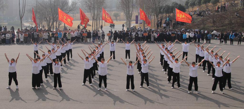第二方队的学子们喊着响亮的口号入场,他们个个精神抖擞,一丝不苟的把每个动作做的完美,一伸手,一抬腿,每一式都整齐标准,软硬兼具的动作展示出大学生积极的生活态度,赢得了在场无数好评。