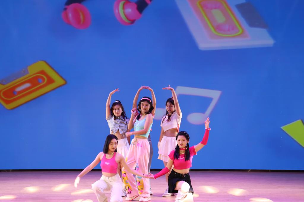 主持人向到场观众介绍各位领导,并对现场观众的到来表达热烈的欢迎和衷心的感谢。晚会在欢快活泼的开场舞曲《Bubble》中正式拉开序幕:《茶飘香》通过舞蹈和悠扬的曲调展现出信阳茶悠久绵长的历史与丰厚的底蕴;大一新生表演舞蹈《tomboy》活力四射,诠释了青春少年对偏见的反抗;大学生艺术团带来的舞蹈《繁花》中舞者屈腿倾身,缤纷的手姿宛若婀娜的花朵绽放在粉色的花海中,给观众带来了极大的视觉冲击。