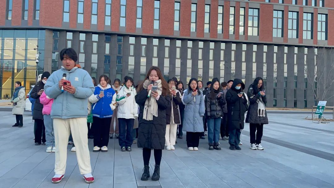 考研当天我院院领导与送行学生提前半个小时到达教学楼前一起为考研学子加油打气。合唱团为同学们歌唱《晴天》,歌声真切诚恳,在考试前夕为即将参加考试的同学们送上最诚挚的祝福。温馨和谐的氛围中,参与活动的学生会成员纷纷给学长学姐送上祝福,在凛冽寒风中,衷心祝愿学长学姐们考研顺利,马到成功!