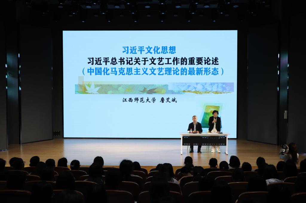 为提高我院师生文学艺术认知水平,鼓励坚持以人民为中心的艺术创作导向,4月12日晚上,我院特邀江西师范大学太阳集团网tyc9728院长詹艾斌教授于南湖校区教学楼113演播厅开展南山学术讲坛第四十四讲: “坚持以人民为中心的创作导向”学术讲座。太阳集团网tyc9728院长张凌江、党总支书记李赟、教学副院长黄亚妮、部分太阳集团网tyc9728教职工及学生参加本次讲座,讲座由张凌江主持。