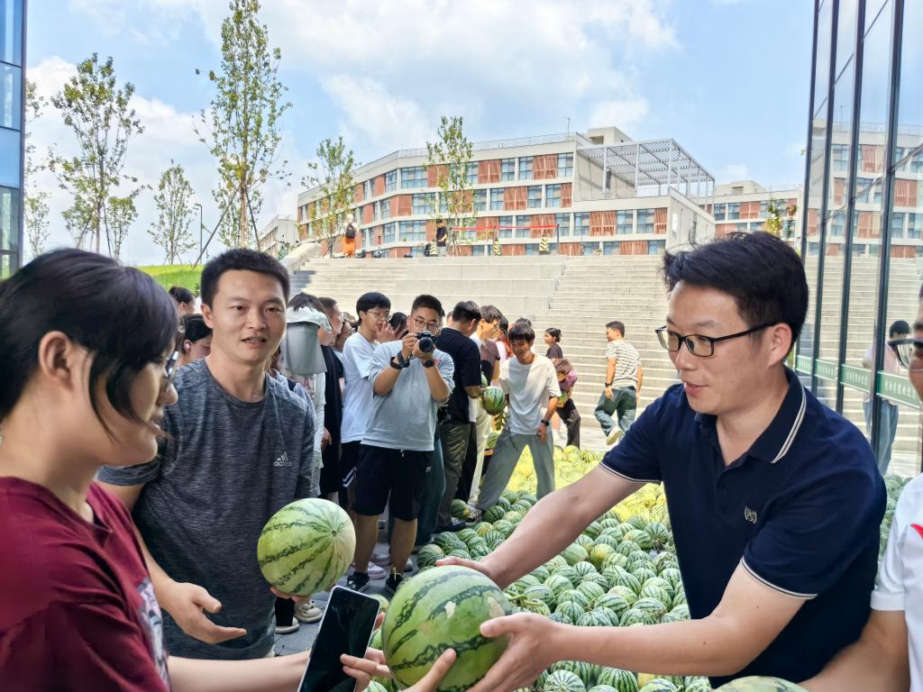 接着,各位领导以及辅导员老师为25届考研学子分发西瓜,并送上自己的祝福和关心。