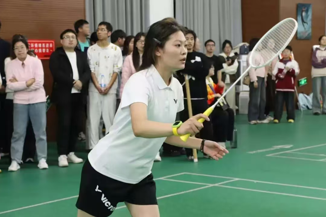 此次比赛最为瞩目的当属教职工组的比赛,老师们从三尺讲台到运动赛场,暂时放下了手中的粉笔和教案,阔步迈向球场,他们既能在教学岗位上诲人不倦,亦能在赛场上乘风破浪。团体赛上,我院老师配合默契,每一个精彩的接发球都赢得了现场观众的阵阵喝彩,每个瞬间都展现着团队间的协作能力和精神风貌。