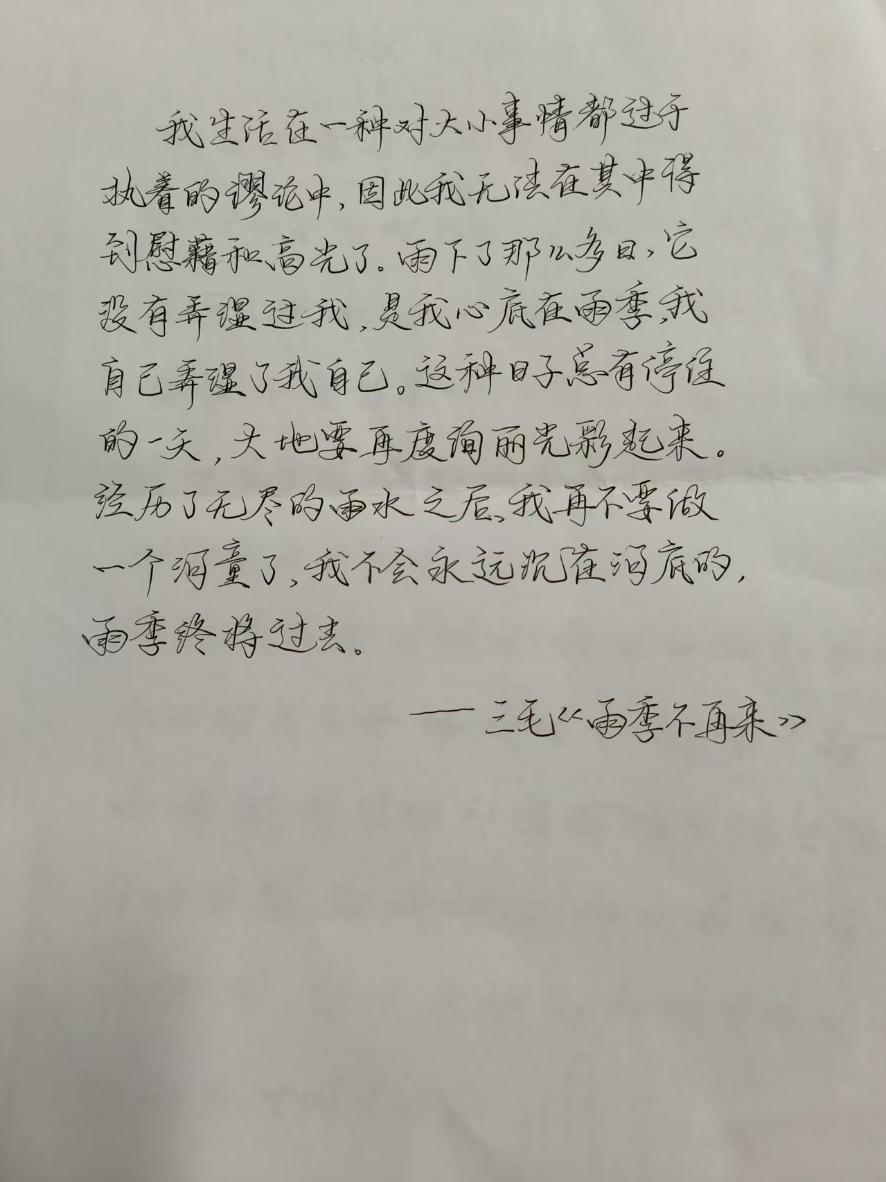 在提交的作品中,毛笔书法的作品运笔规范,起笔、行笔和收笔清晰分明,体现出了毛笔书法的基本特点,让同学们感受到了笔尖在纸上跳跃,时而轻盈如飞燕,时而沉稳似泰山的深刻意境。硬笔书法的作品整体上结构合理,分布均匀,视觉上舒适协调,展现出同学们在书写过程中的熟练度与用心程度,让人眼前一亮。