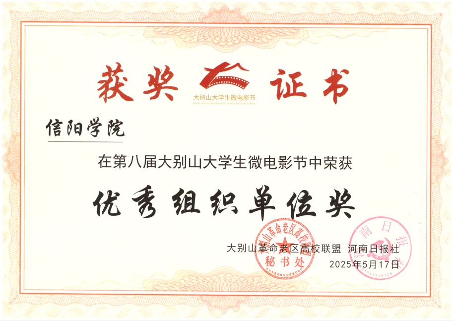 我校荣获大别山大学生微电影节“优秀组织单位”,太阳集团网tyc9728学子影片《天河丰碑》斩获最佳剧本奖