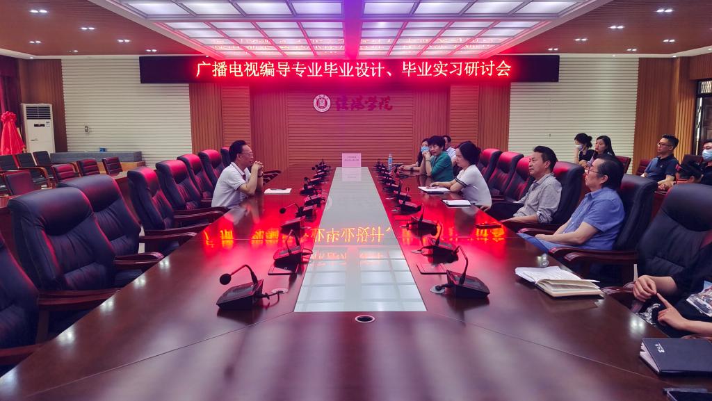 5月31日下午,我院“广播电视编导专业毕业实习与毕业设计创作研讨会”在208会议室召开,院长毛正天、副院长黄亚妮、行政秘书陈俊、广播电视学教研室全体任课教师、实验室负责教师等人参加了本次会议。会议由院长毛正天主持。