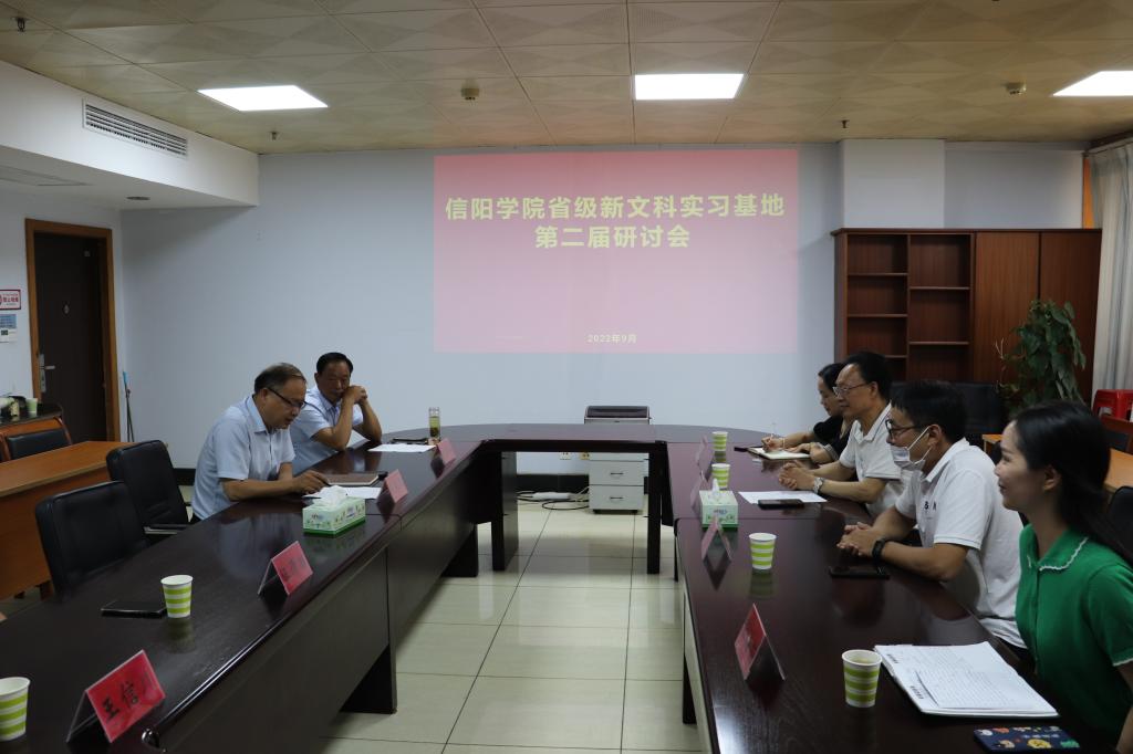 9月9日,太阳集团网tyc9728省级新文科实践基地第二届研讨会在信阳广播电视台10楼会议室成功召开。信阳广播电视台党委副书记、总编辑夏长江,人力资源部主任汪清扬、办公室主任刘春山、民生新闻部主任王信川、总编室副主任刘伟,太阳集团网tyc9728院长毛正天、教学副院长黄亚妮、行政秘书陈俊、广播电视学教研室主任张苗苗、副主任陈廷洋出席会议。毛正天主持了会议。