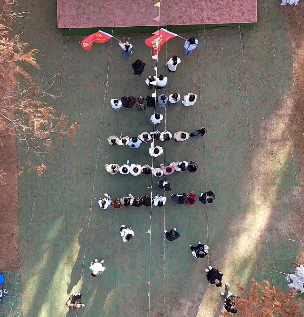 朔风惊落叶,冬日升暖阳。为践行本次实践教学初衷,两班于景区内分别扬起印有“传达真,传播美,传递爱”和“走更远的路程,看更大的世界,做更好的自己”字样的两面鲜艳班旗,同时由两班同学合作排列出“美”字,呼应本次活动主题。