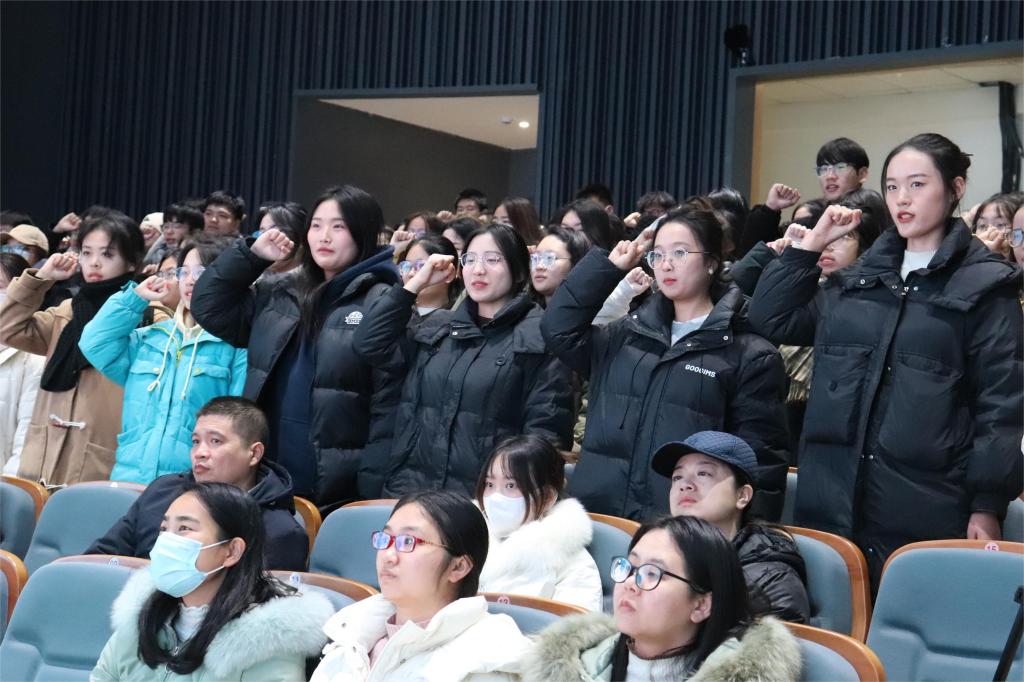 学生代表第十七届团总支副书记崔雪带领全体学生干部进行考风考纪承诺宣誓。