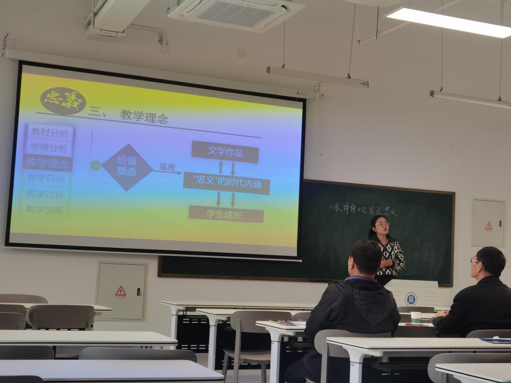 比赛中,王永莉老师立足《<水浒传>之宋江忠义》文本,详细梳理了宋江思想行为变化发展的三个轨迹,接着提出问题:“宋江等人秉持‘忠义’,何以落得悲剧结局?”引导学生进行合作探究。最后从教学到教育,联系实际,阐释处于今天新的历史条件下我们又该如何继承和弘扬忠义这一宝贵的精神财富。其他参赛选手或慷慨激昂,或引人入胜,为我们生动展现了授课的多种形势与技巧。