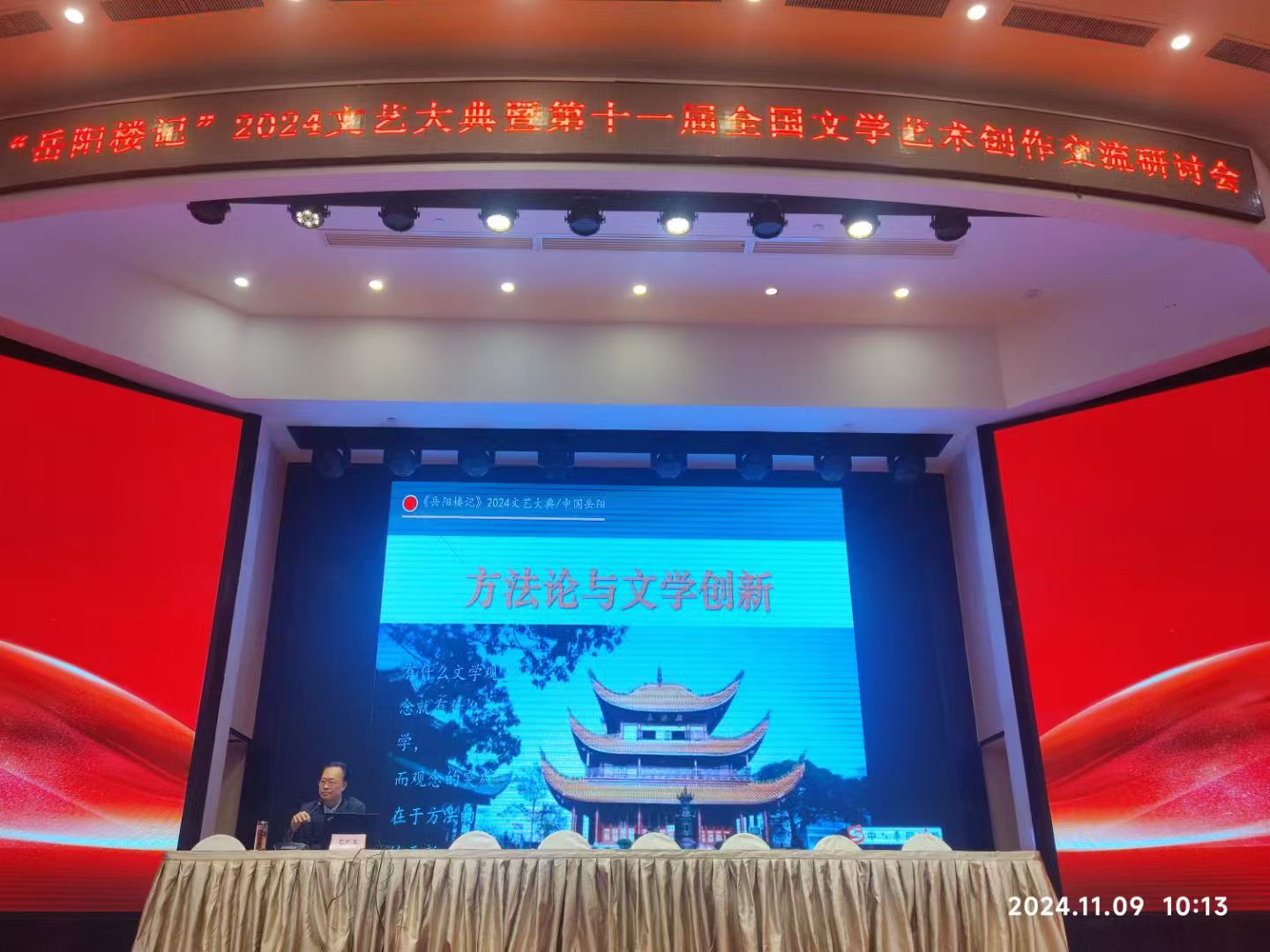 11月9日,我院特聘教授、河南省省级重点学科----中国语言文学学科带头人毛正天应邀赴湖南岳阳为“岳阳楼记2024文艺大典暨第十一届全国文学艺术创作交流研讨会”做学术讲座。