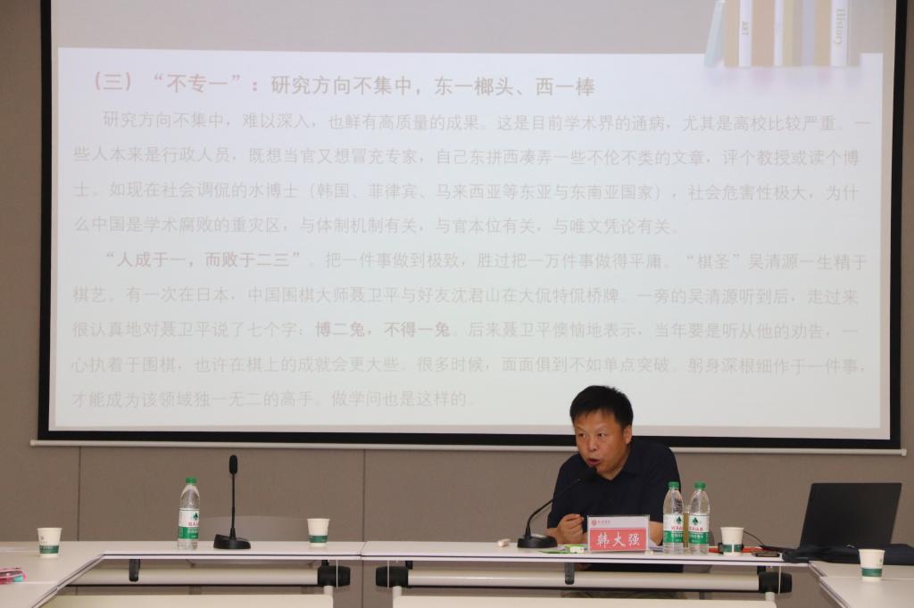 韩大强教授首先向大家讲述了目前学术论文写作的普遍困境。与此同时,他又以自己作为教师、编辑、作者三种不同身份的视角剖析了学术论文创作中可能遇到的难点。
