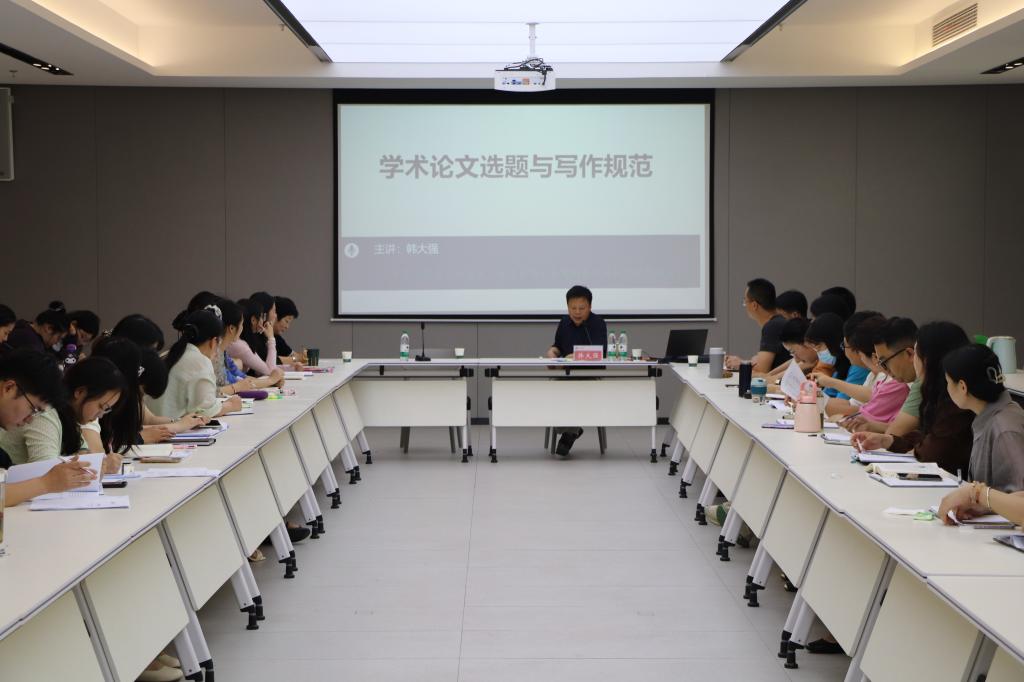 韩教授从学术论文选题和论文写作规范两个方面进行了详细的方法指导。在学术论文选题上,他认为主要存在着选题“大而旧”“过度赶时髦”“不专一”的问题,同时对这三个问题的解决提供了具体可行的方案。在论文写作规范上,他着重强调了论文的形式规范,内容规范。在指导过程中,韩教授以自己的亲身经历为例,用经验之谈向教师们传授论文写作的方法与技巧。同时,韩教授从编辑的角度告诉了大家论文刊登的标准,为教师论文写作与发表指明努力方向。