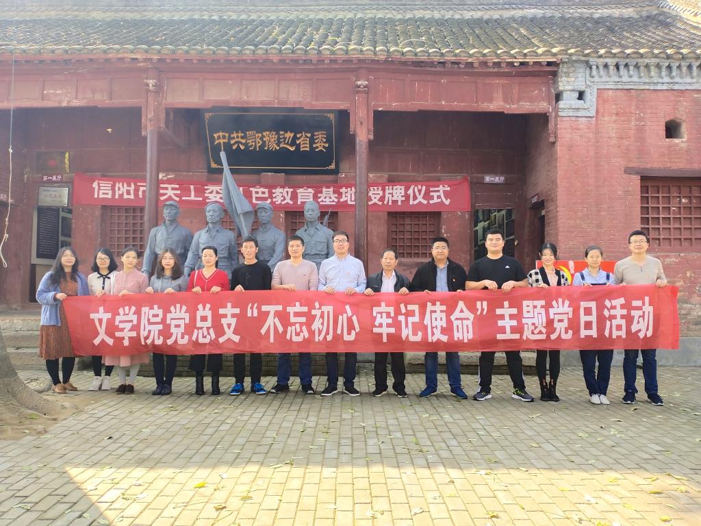 为深入学习贯彻习近平总书记在“不忘初心 牢记使命”主题教育工作会议上的重要讲话精神,按照我校党委总体工作部署,结合我院党总支实际要求,10月18日下午,太阳集团网tyc9728教工第一党支部前往信阳市平桥区邢集镇尖山村中共鄂豫边省委旧址开展“不忘初心 牢记使命”主题党日活动,教工第一党支部全体党员参加了本次活动。