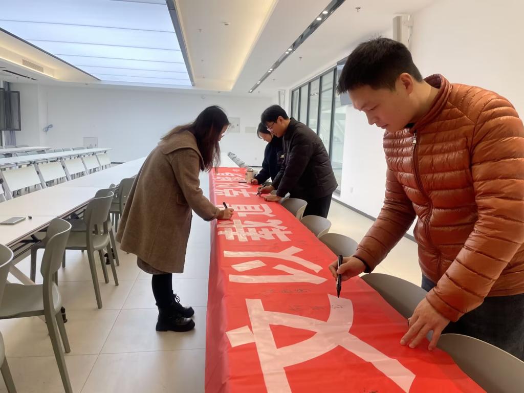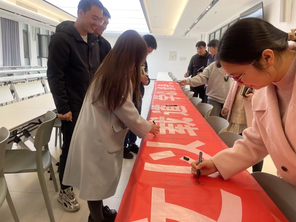 接着大家依次在写着“文以载道,学以修身”的条幅上签名,强化责任担当,牢记育人使命,争做优良学风的践行者。