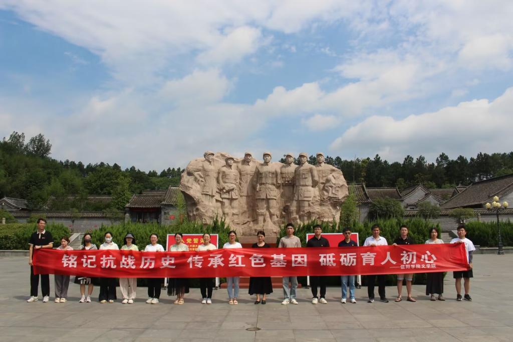 离馆前,师生在刻有“桐柏英雄纪念碑”的丰碑下合影,手中书法卷轴与猎猎党旗相映生辉。正如学生代表李志明所言:“今日我们以笔墨书写信仰,未来必以行动践行担当!文学人的笔杆,既要传承千年文脉,更要书写时代篇章!”