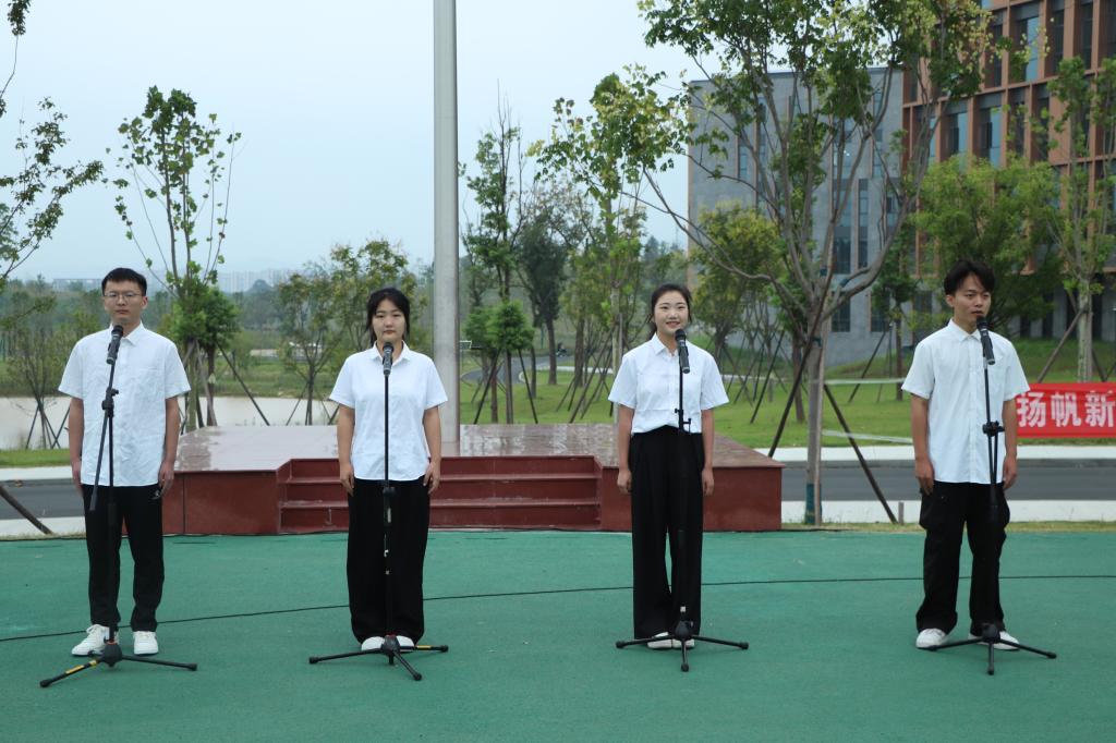 紧随其后的是配乐朗诵环节。李妍等同学以专业的朗诵水准,深情演绎了作品《那一年,中国青年正十八》。他们用富有穿透力和层次感的声音,生动展现了不同时代中国青年的精神风貌与理想追求。他们的朗诵将新时代青年继往开来、矢志奋斗的决心表达得淋漓尽致,把现场气氛推向了一个新的高潮。