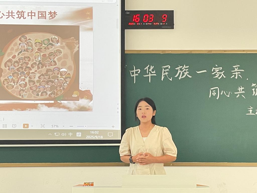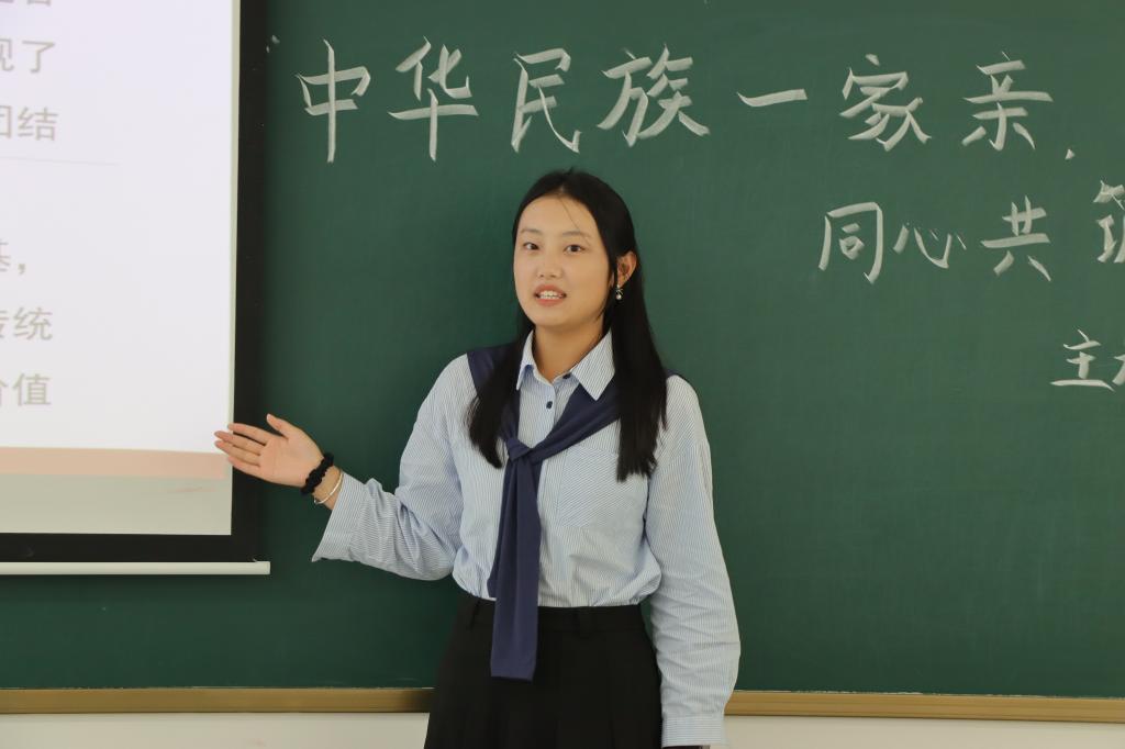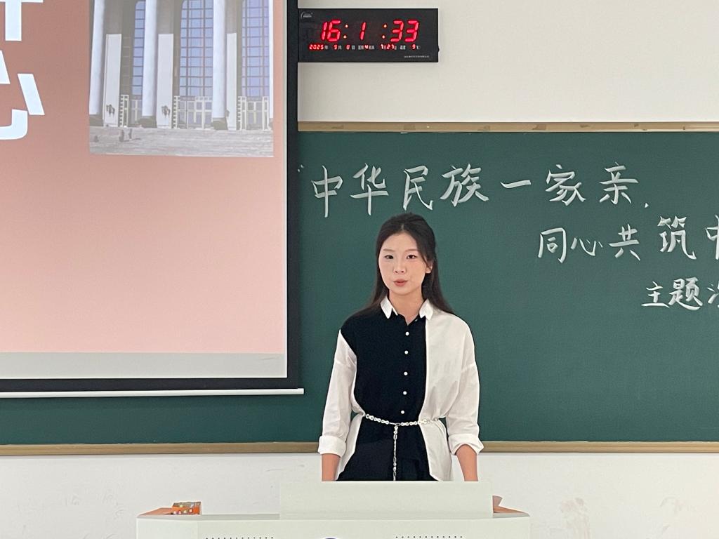 宋一丹同学娓娓道来,开篇引用习近平总书记关于民族团结的重要论述,强调民族团结是国家繁荣和民族复兴的根本力量。她从历史纵深与时代华章中汲取素材,以西藏自治区成立60周年的发展成就为例,阐述我国民族区域自治制度的成功实践,展现中华民族多元一体的本质特征;结合抗日战争胜利纪念与九三阅兵的时代场景,回顾中华儿女在民族危难时万众一心的磅礴力量,呼吁大家从雪域高原的发展成就、抗战历史荣光与时代气象中凝聚智慧,共同书写民族团结奋斗新篇章,为实现中华民族伟大复兴奋勇前进。