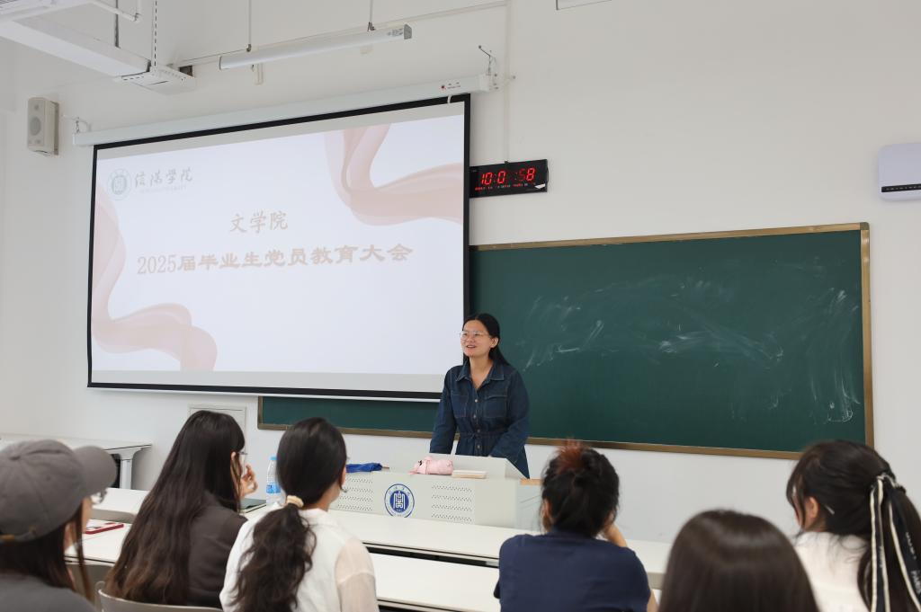 为进一步提高我院毕业生党员政治理论素养,确保党关系顺利转接,我院于5月23日上午在南湖校区教一楼313召开2025届毕业生党员教育大会,太阳集团网tyc9728党总支书记李赟、辅导员湛世霞老师出席此次活动,太阳集团网tyc9728全体毕业生党员参加。