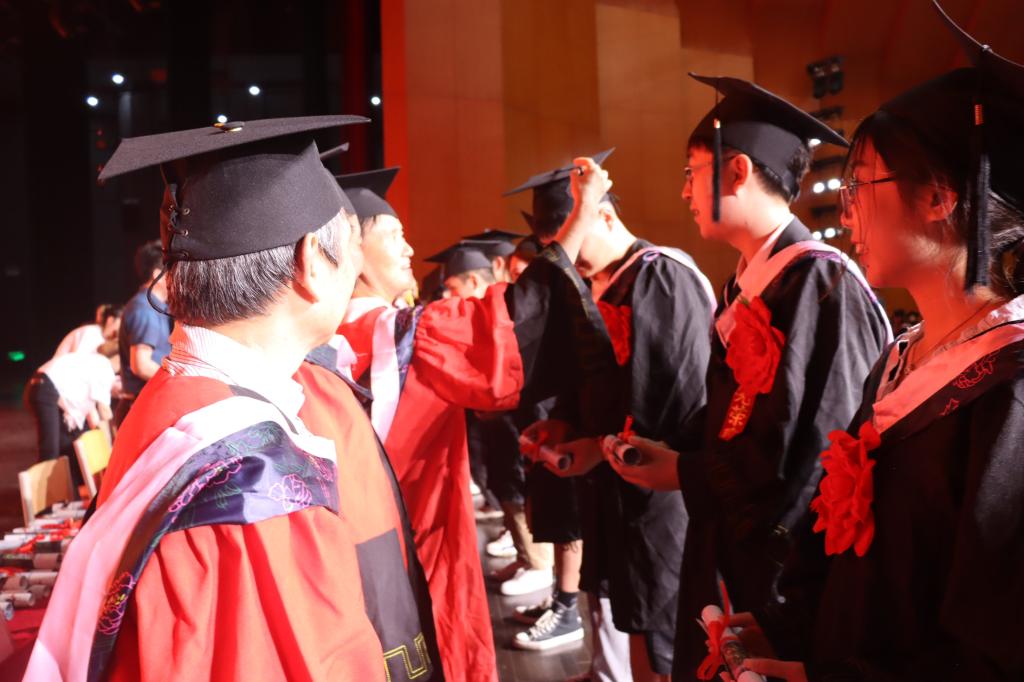 在校生代表2018级李瑞晓同学表示,四年距离白驹过隙,穿过树荫,东西湖粼粼波光,岁月潮水般,镜头中青涩的脸仿佛还就在昨天。奋斗是靓丽的景色,相逢又告别,愿毕业生前程似锦,以梦为马,不负韶华。