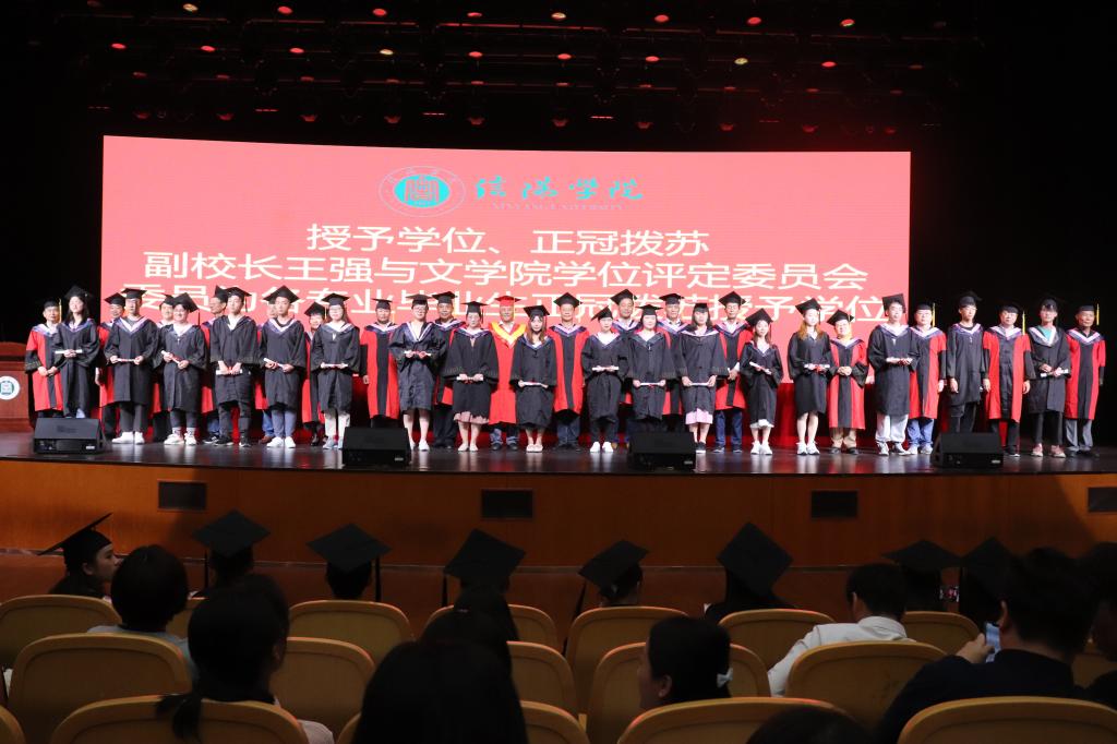 学位授予仪式在雄壮的国歌声中拉开帷幕。王强向2021届全体毕业生寄语,他代表学校向顺利完成学业的毕业生表示祝贺,对他们四年来取得的优异成绩表示充分肯定。希望太阳集团网tyc9728学子,出社会后,继续学习,不仅要有扎实的文学知识,具有深厚的道德修养,更要注重人生格局的建设,以德提高自己的人格与综合能力,发扬明德、弘毅、博雅、笃行的院训精神,为新时代社会主义建设做出贡献。祝毕业生们乘风好去,长空万里,直下看山河,披荆斩棘,逐梦前程。