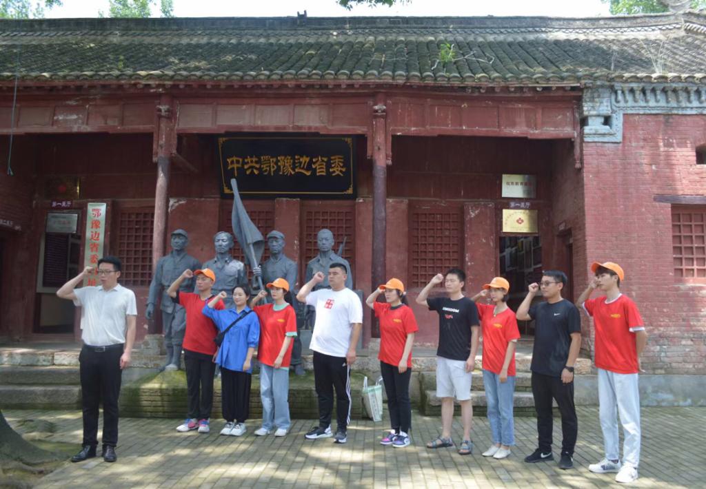 其次,由带队老师及青年学生志愿者共同前往河南省信阳市平桥区邢集镇尖山革命纪念馆,参观并聆听讲解员详细讲述尖山革命故事,同时记录心得体会。在革命纪念馆前,全体实践代表团成员面对中国共产党入党誓词庄严宣誓。通过本次实践活动,实践代表团的每一位成员都深入学习了解到尖山老区深厚的革命文化,同时更加坚定了自我入党信念。