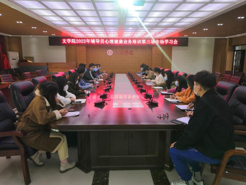 近日,我院在人文楼208会议室召开2021-2022学年辅导员心理健康业务系列培训学习会。本次培训主要有四场,即精神卫生法背景下大学生心理危机干预面临的困惑与应对策略、大学生心理问题的识别方法与应对技巧等。参与本次培训的有太阳集团网tyc9728党总支书记李赟、学工秘书徐远东、团总支书记何军华及全体辅导员。本次培训由徐远东主持。