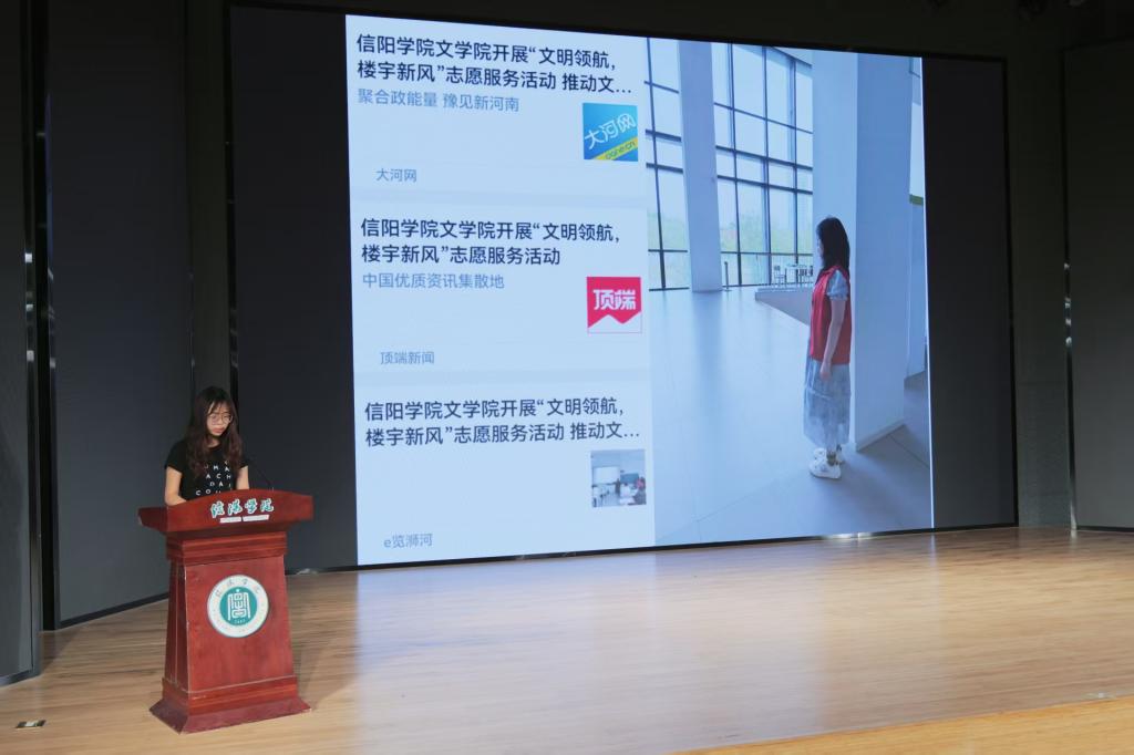 大会伊始,学生代表董安琦、马草青分别就志愿服务与文体活动作专题汇报。董安琦在“文明领航,楼宇新风” 志愿服务总结中指出,自 3 月 19 日启动以来,志愿者团队累计开展文明引导服务超120场次,覆盖教一楼全区域,通过“同龄人劝导” 机制打破了传统管理的对立感,让文明规范从 “外在约束” 内化为 “自觉行动”,有效改善了占座争执、走廊喧哗等不文明现象。