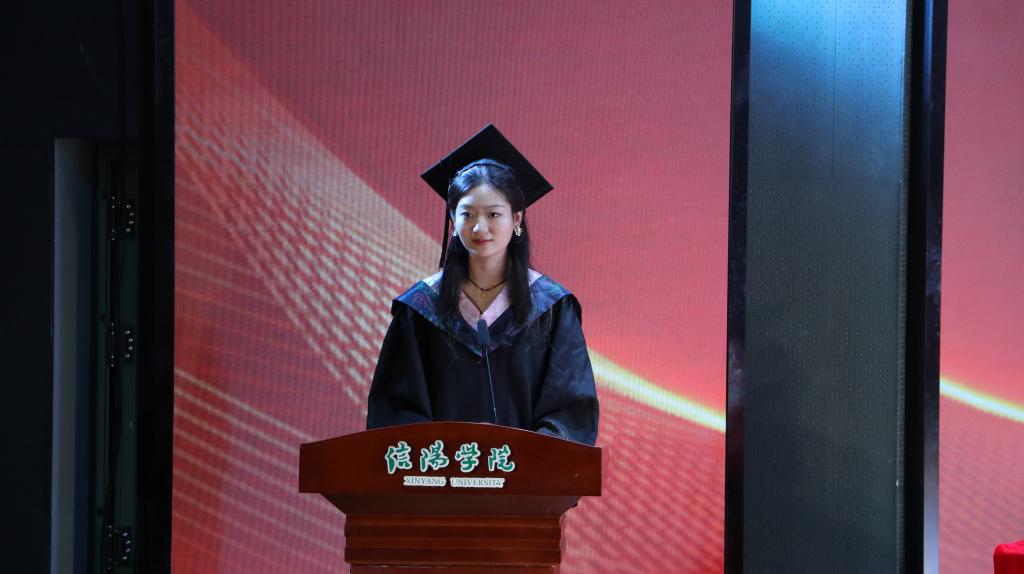 会上,毕业生代表、三次励志奖学金获得者、中共党员、考取青海大学硕士研究生的赵梦佳发表毕业感言,她向老师们表达由衷的感谢和敬意,分享了四年来的拼搏历程与收获,继往开来,作为毕业生代表更要不断发扬校训精神,用实际行动去追逐那充满无限可能的美好未来。
