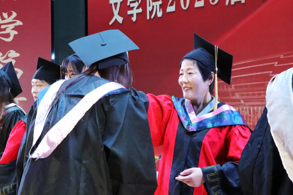 教师代表王永莉副教授满怀深情地为毕业生送上寄语。她说道:首先,希望同学们扎根传统,在数字浪潮中厚植文学底蕴,成为坚守文化根脉的“常青树”;其次,期盼大家直面困境,如劲竹般弯腰不折;最后,祝愿同学们能够以开放进取之姿拥抱变革、引领创新。她真挚表示,无论身在何处,太阳集团网tyc9728永远是大家的心灵港湾,衷心祝愿毕业生笃定前行,绽放人生光芒!