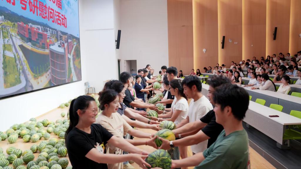 清凉相伴,温情相随。活动现场,同学们纷纷表达了对学院的感谢,并表示将全力以赴,不负师长期望。随后,领导老师们为考研学子分发甘甜可口的西瓜,并亲切询问大家的复习进展和生活需求,鼓励他们坚定信念,保持良好心态,在追梦路上勇往直前。