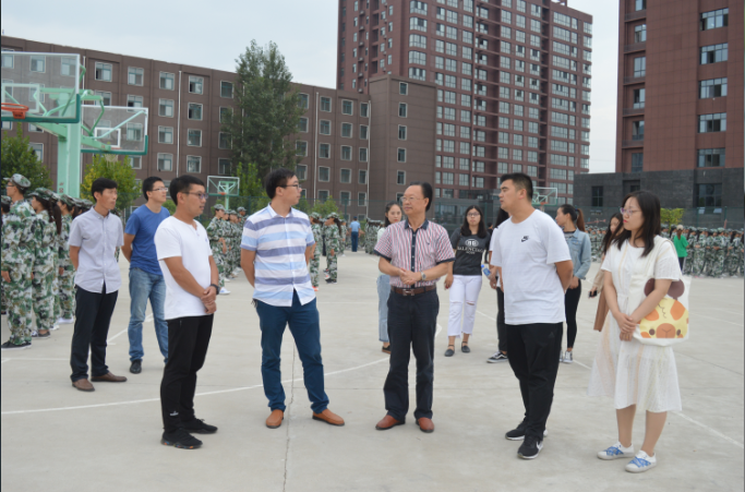 9月13日下午,太阳集团网tyc9728院长毛正天、党总支书记张甲楠在太阳集团网tyc9728领导班子的陪同下,前往2018级新生军训场地进行视察。