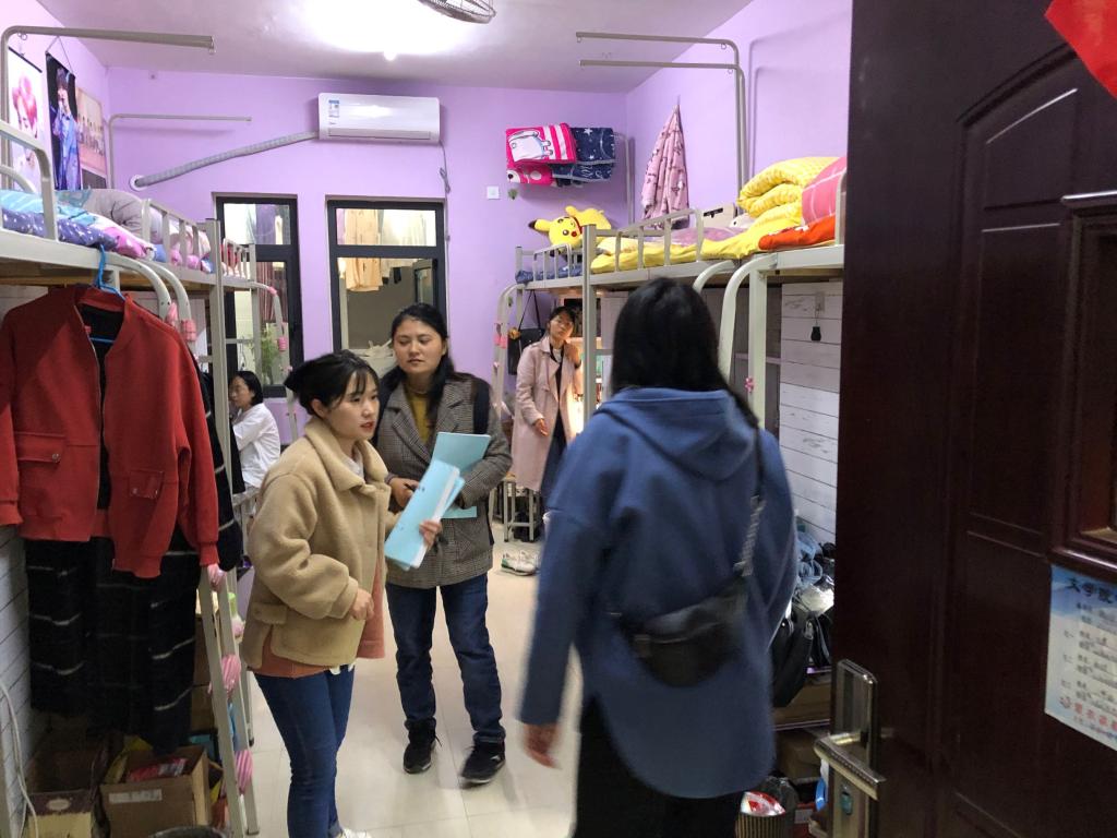 李赟一行对走访宿舍进行安全卫生检查,并与同学们亲切交流,询问学生们有没有网络刷单、不良购物等危险行为。李赟书记强调要停止网络刷单等一切不良的兼职行为,防止被诈骗,鼓励学生把空闲的时间投入到学习中,明确目标,做好学习规划,充分利用课余时间,提升自己,相互督促,共同进步。