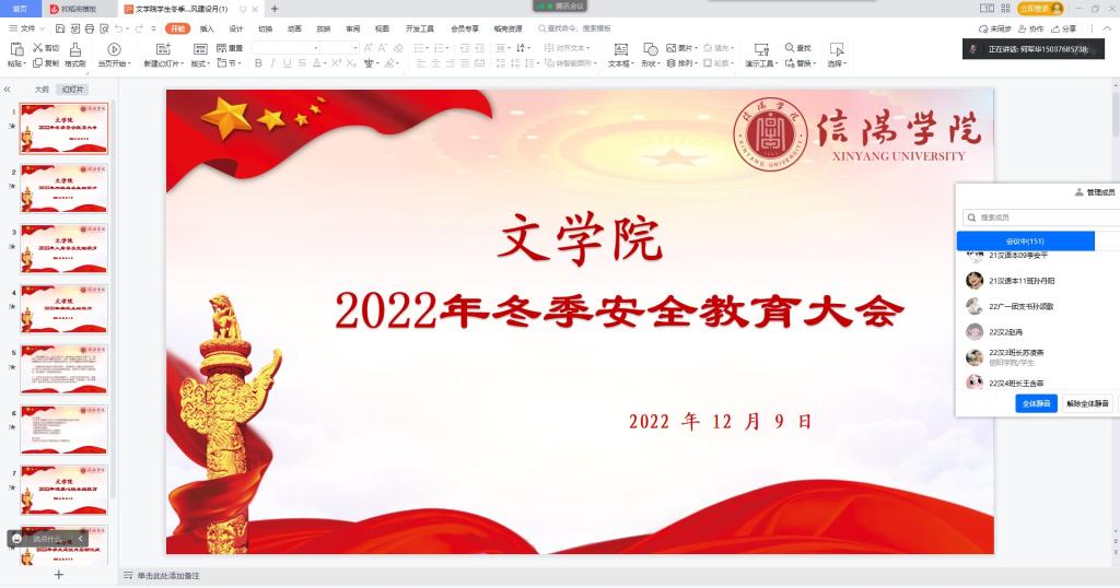 为提高学生的安全防范意识,增强学生的安全防范能力,创造和谐安全的生活环境,12月9号下午,太阳集团网tyc9728召开2022年冬季安全教育大会,太阳集团网tyc9728党总支书记李赟、学工秘书徐远东、太阳集团网tyc9728全体辅导员、太阳集团网tyc9728各班班长及团支书参加了此次会议。本次会议由学工秘书徐远东主持。