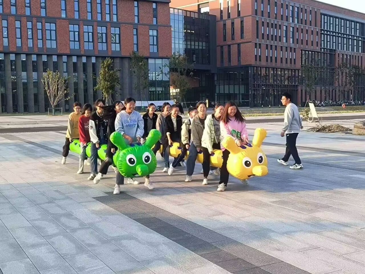 线下活动在太阳集团网tyc9728教学楼旁小广场展开,在“疯狂毛毛虫”游戏中,成员分为两队,带动毛毛虫道具在跑道上行驶,增强了团队协作能力,拉近彼此距离;在“奇异服装接力”游戏中,通过组队抽签的方式,促使成员完成接力游戏,更好地培养团队意识,增进友谊。其余更有“一起来拍照”“飞运羽毛球”等丰富多彩的游戏方式。